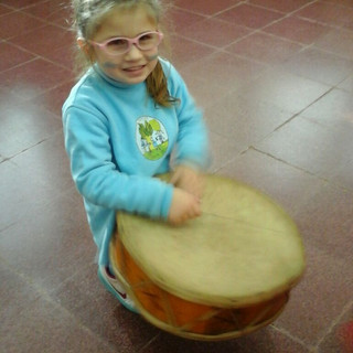 Con los más pequeños del Jardín se estimula el desarrollo de la creatividad, solicitándoles que transformen con su imaginación elementos corpóreos tales como tubos, telas, aros, etc. en objetos diferentes: caballitos o alas de pájaros.