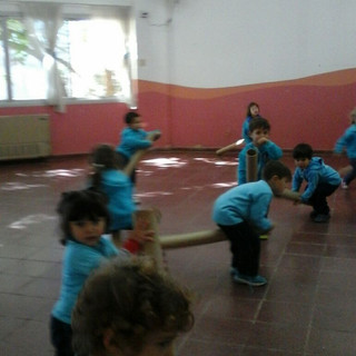 Desde el proyecto “Conocimiento Corporal”, con los chicos de sala de cuatro años, se realizan recorridos explorando niveles: arriba de sillas como si fueran montañas, o haciéndose chiquitos para caber debajo de ellas; e ingresando en cuevas donde viven las hormigas, jugando a ser guardabosques.